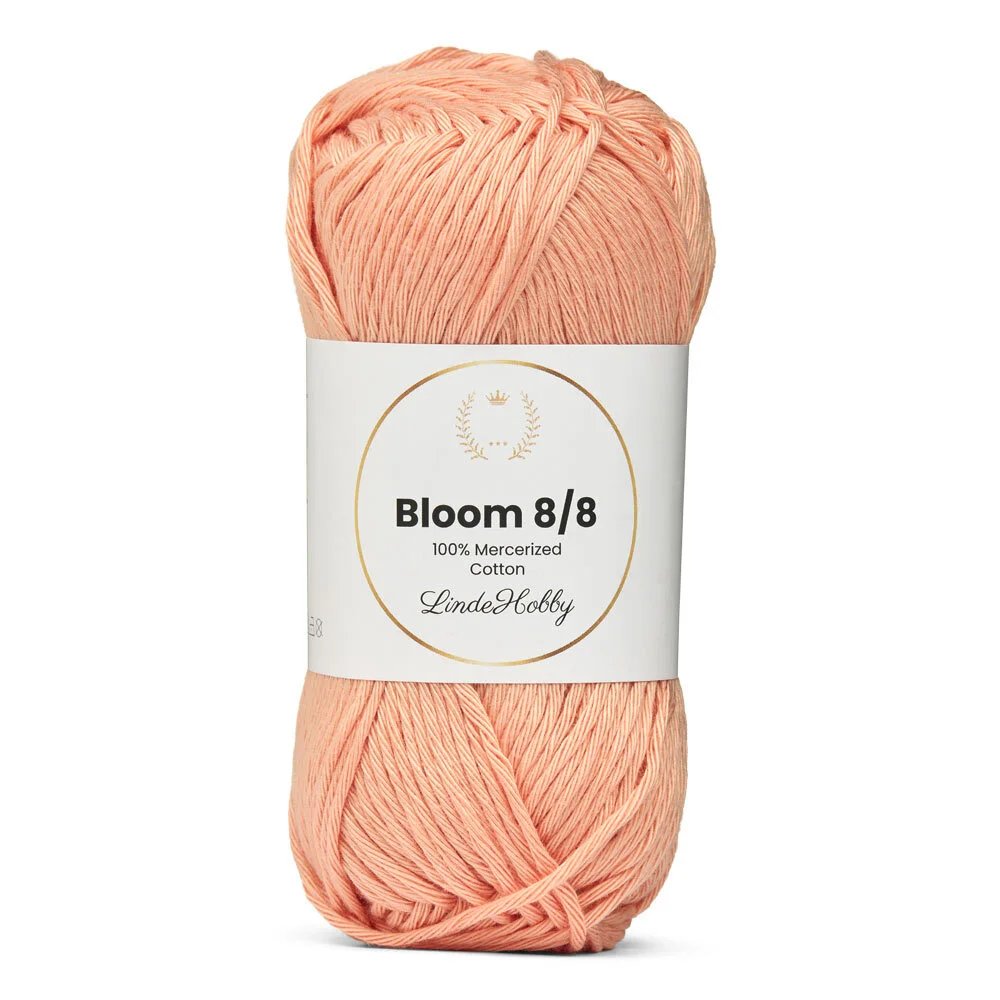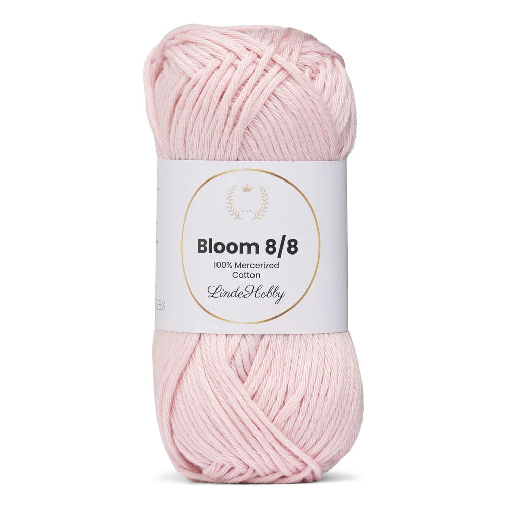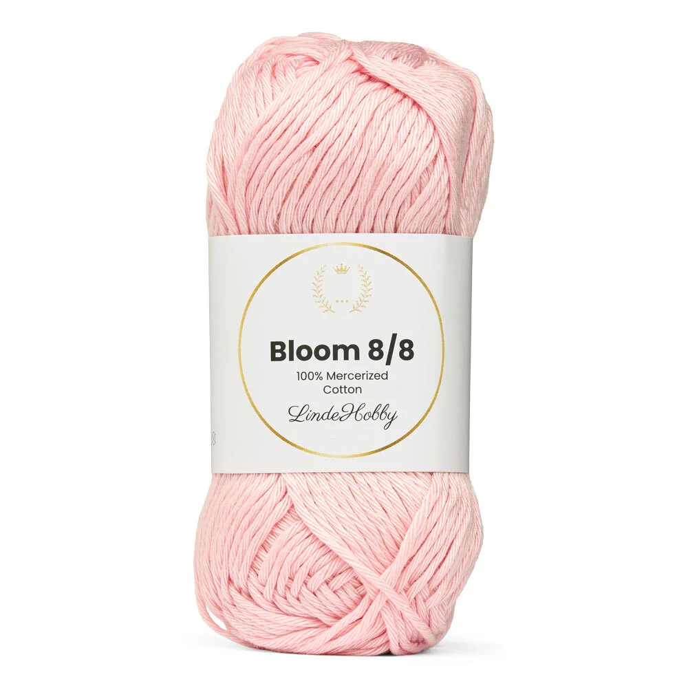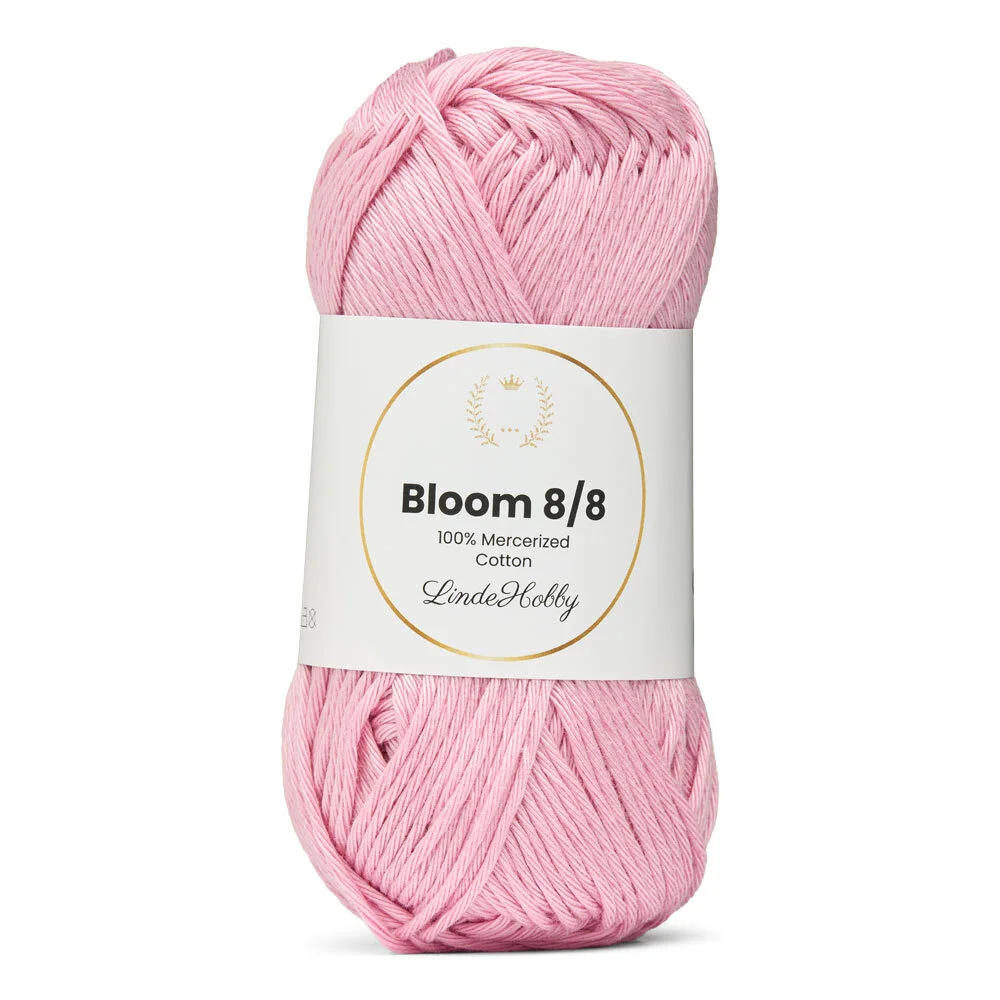 LindeHobby Bloom 8/8 Mercerized Cotton kombinerer holdbarhed, glans og formstabilitet – perfekt til dig, der ønsker et kvalitetsgarn med alsidige anvendelsesmuligheder.