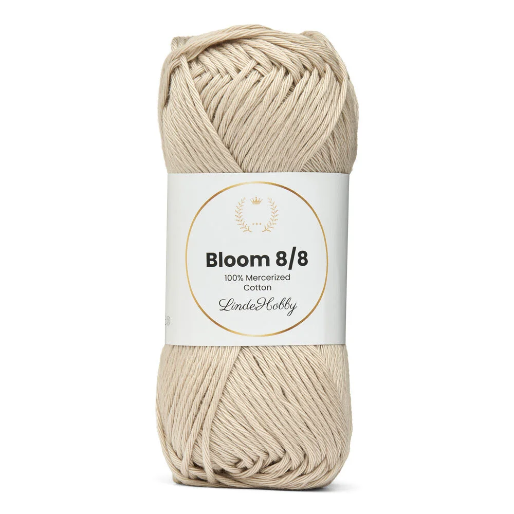 LindeHobby Bloom 8/8 Mercerized Cotton er et slidstærkt og glansfuldt garn i 100% merceriseret bomuld. Den særlige behandling giver garnet en smuk, blank overflade og ekstra holdbarhed. Det egner sig perfekt til både tøj og interiørprojekter, hvor man ønsker et elegant og ensartet resultat.