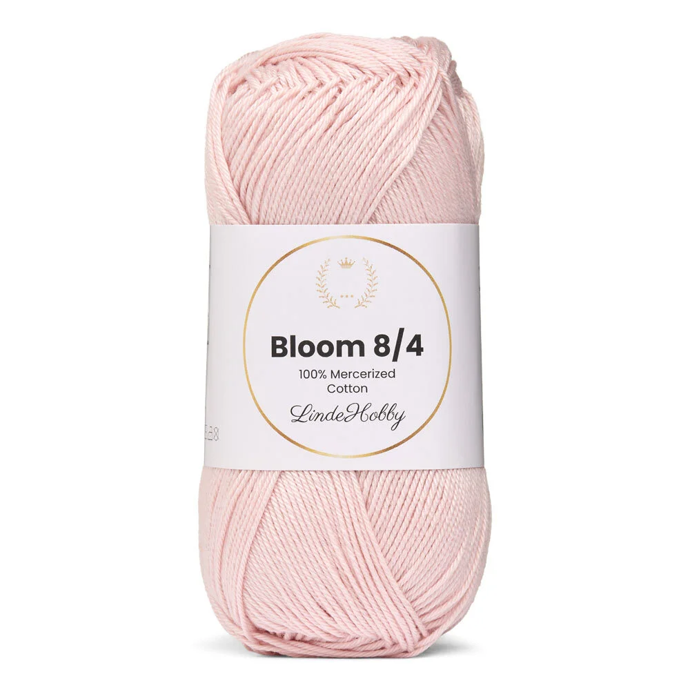 LindeHobby Bloom 8/4 Mercerized Cotton er et glansfuldt og slidstærkt garn i 100% merceriseret bomuld. Det er den tyndere udgave af det populære Bloom 8/8 og byder på samme elegante finish og høje kvalitet – perfekt til fine og detaljerede håndarbejdsprojekter. Garnet fås i en bred vifte af smukke farver, der giver dig kreativ frihed til både hækling og strik.