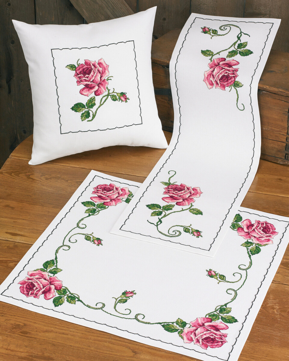 - Eksklusivt broderisæt med rosemotiv.