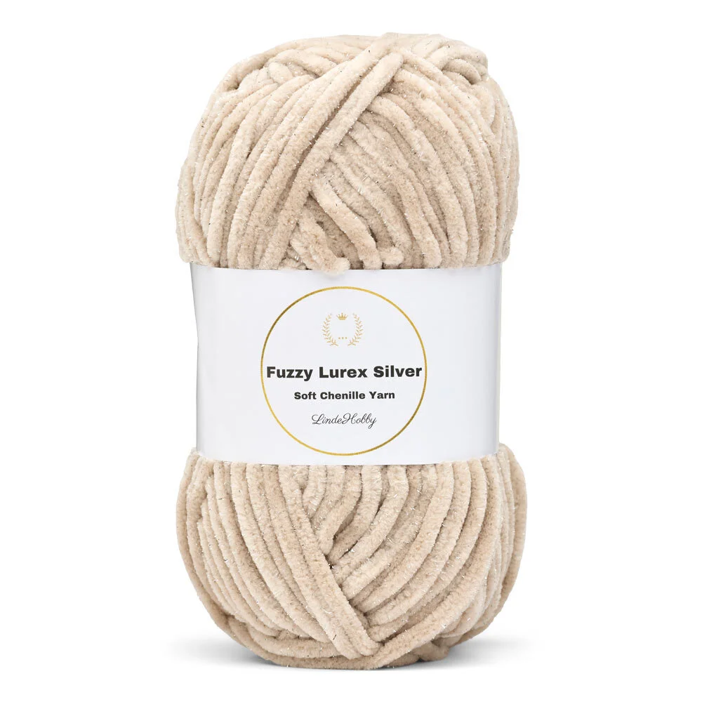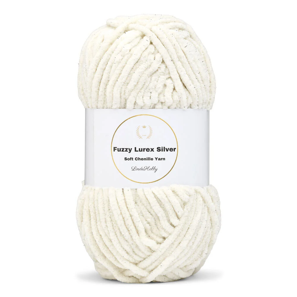 Fuzzy Chenille Silver Lurex er et unikt valg for dig, der ønsker blødhed, volumen og diskret glimmer i ét og samme garn. Det er både let at arbejde med og dekorativt i sig selv – perfekt til kreative idéer med ekstra effekt.