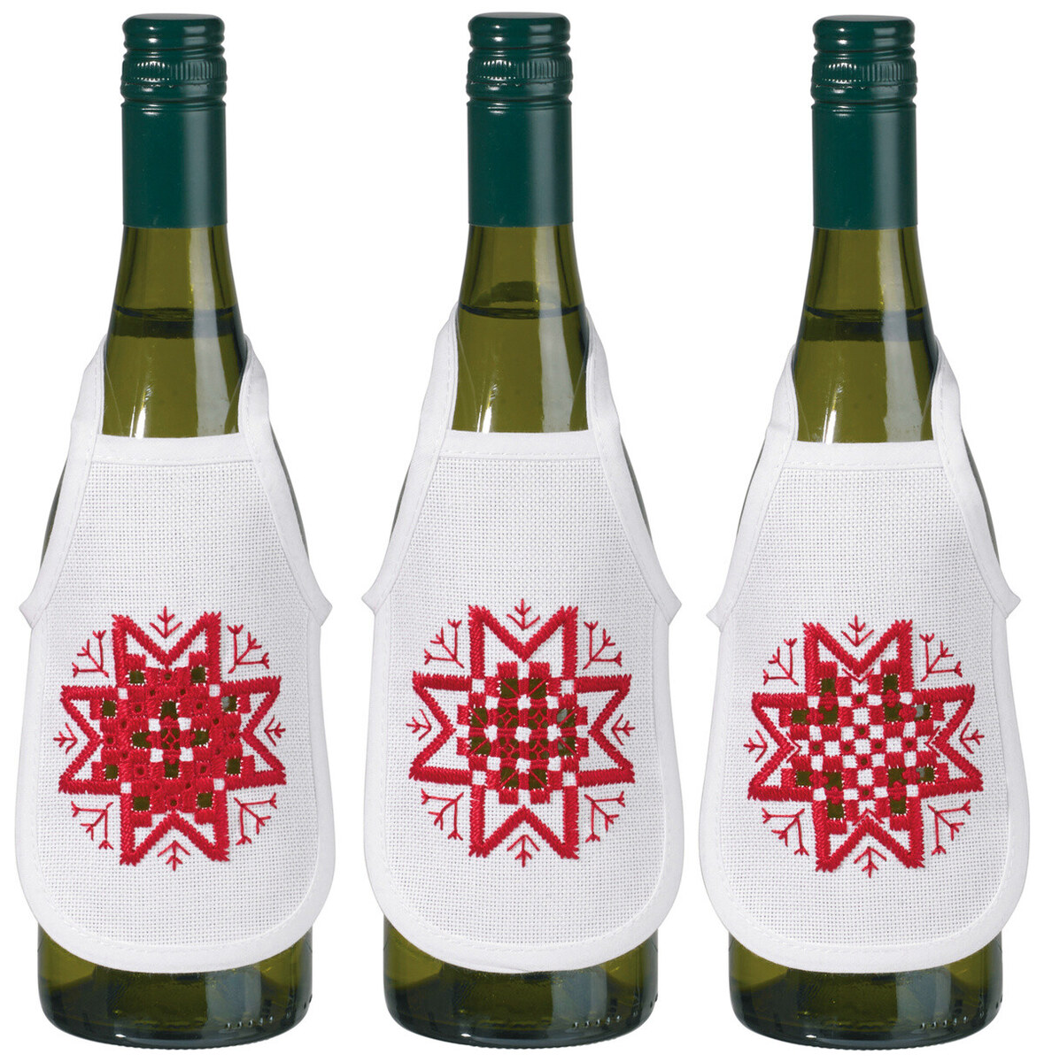 - Flaskeforklæde design: Fremstillet til at sy på det fine Hardanger 0330/180 flaskeforklæde med en smuk hvid kant.