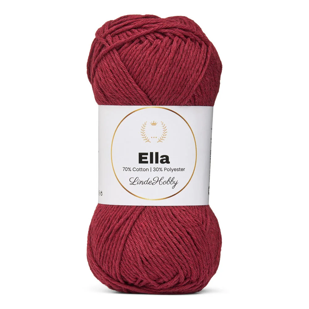LindeHobby Ella 130 er et slidstærkt og alsidigt garn, der kombinerer 70% bomuld med 30% polyester. Denne blanding giver garnet en blød og naturlig fornemmelse fra bomulden, samtidig med at polyesteren tilfører ekstra styrke, farveægthed og formstabilitet. Garnet fås i flere smukke farver, som holder sig flotte vask efter vask – perfekt til projekter, der skal være både praktiske og dekorative.