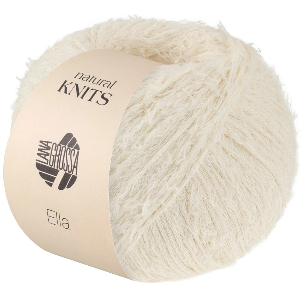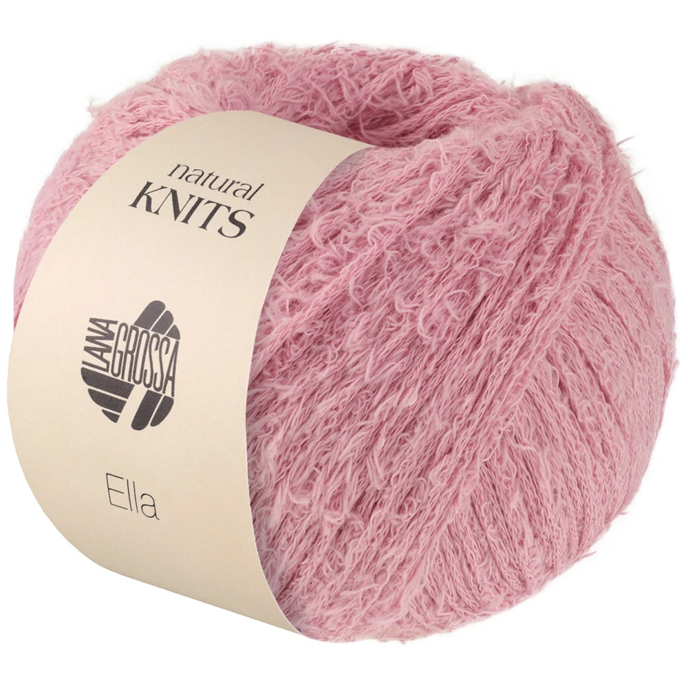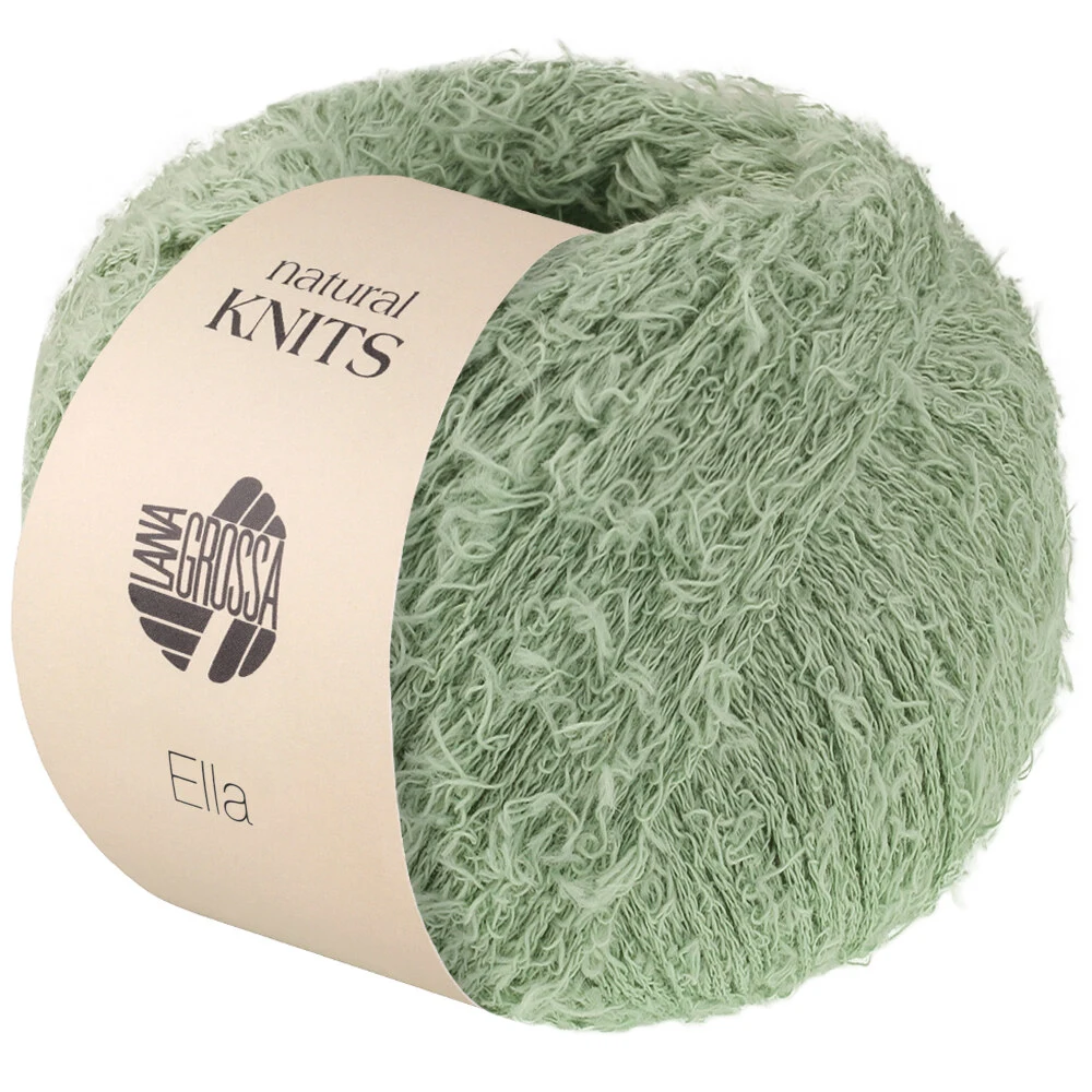Lana Grossa Ella er et let bomuldsgarn med en spændende og dekorativ struktur, som giver et levende udtryk i det færdige strik. Garnet er fremstillet af 100% bomuld og har en let og luftig karakter.