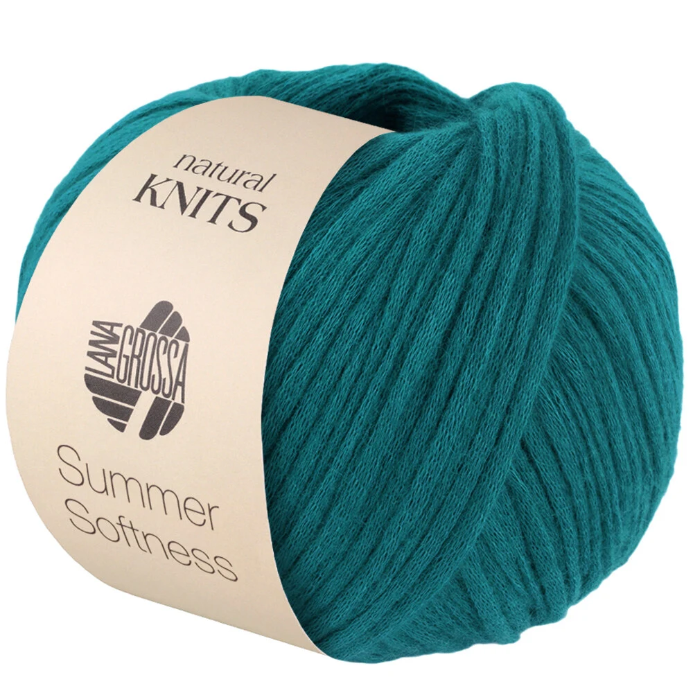 Lana Grossa Summer Softness er et let og blødt garn, der kombinerer naturlige materialer med en luksuriøs følelse. Med 80% biobomuld og 20% merinould har dette garn en unik struktur, hvor en fin bomuldssnor er omgivet af luftige merinofibre. Resultatet er en elegant, let og åndbar kvalitet, der føles behagelig mod huden.