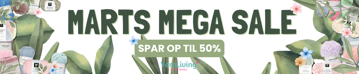 Marts Mega Sale betyder store besparelser på udvalgt garn og tilbehør, når vi rydder op på lageret.