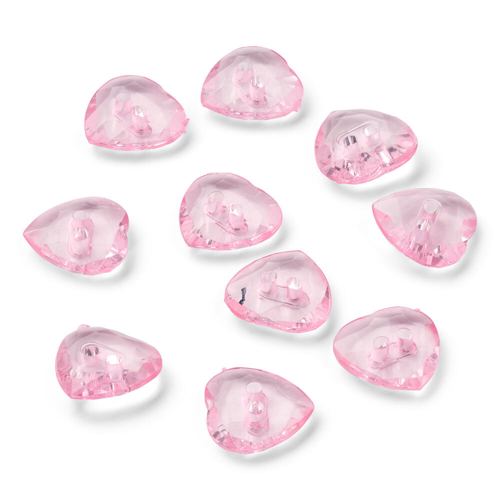 Kort om produktet: Elegante lyserøde, hjerteformede krystalknapper til lukning og pynt på tøj, strik og tilbehør.